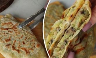 Potom do palacinky vložíme ľubovoľnú náplň a zabalíme ju. Palacinku s plnkou smažte z oboch strán dozlatista. Vrchnú časť potrite maslom.